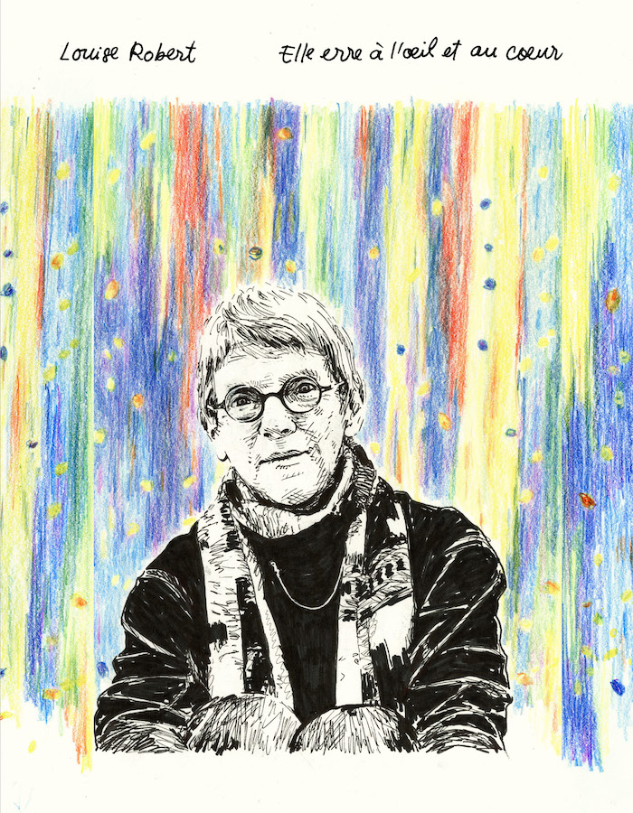 À l’invitation des Éditions de la Salle Alfred-Pellan, l’artiste Emmanuelle Jacques s’est entretenue avec l’historien de l’art Michel Huard autour de la création du catalogue raisonné de l’œuvre de Louise Robert. De ces échanges est né un récit intime et touchant, illustré de dessins vifs et sincères. À mi-chemin entre le roman graphique et le fanzine, Elle erre à l’oeil et au coeur propose un texte poignant, une immersion dans un long travail d’enquête, et un regard sensible sur l’histoire de l’art québécois de la fin du XXe siècle à aujourd’hui.
